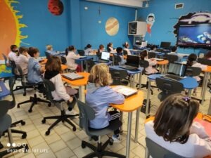 Grazie ai bandi a cui ha partecipato la scuola, alle collaborazioni con il Comune, con il territorio, con le famiglie e grazie ai progetti PNRR, sono stati trasformati alcuni laboratori e alcuni spazi in aule aumentate dal digitale. Segnaliamo inoltre due ambienti PON con setting cooperativo, connessione e LIM; due laboratori mobili PON con carrelli per pc; un atelier creativo MIUR con smart TV, stampante 3D e plotter; una biblioteca innovativa MIUR con smart tv, tablet, gazebo, carrelli per libri e arredi su misura; ambienti digitali innovativi per le STEAM con set di robotica educativa per la programmazione di modelli e costruzioni, tablet, schermi touch e librerie ondulate. Il PON Digital Board ha permesso di aggiungere alla dotazione già in essere 27 schermi touch installati in 17 aule di scuola primaria e 10 sezioni di scuola dell’infanzia. Nelle scuole primarie la dotazione informatica comprende due laboratori tecnologici che necessitano comunque di ammodernamento. Nelle scuole dell’infanzia sono attivi percorsi condotti dai docenti interni inerenti al CODING unplugged e al pensiero computazionale.